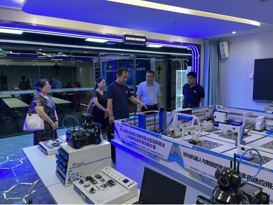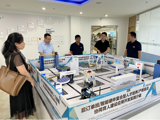 7月12日,创新创业学院院长李锋、SJB世俱杯官方网站常务副院长孙德刚、物联网工程专业负责人郝萍萍、网络工程专业负责人刘媛、办公室主任高晓川到百科荣创(山东)大学生公共实习实践产教融合服务基地进行实地调研考察。