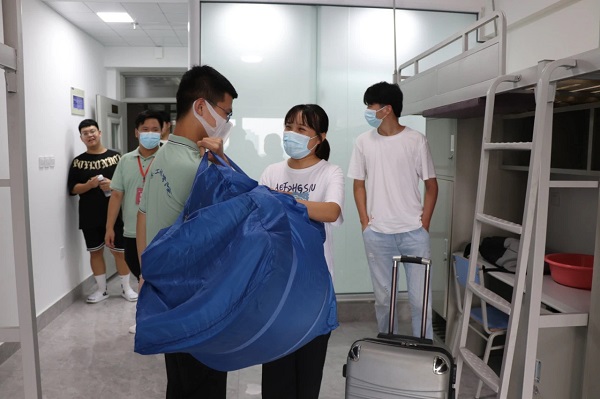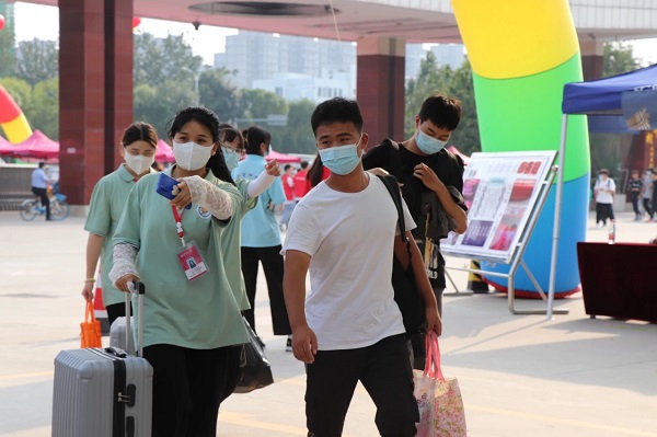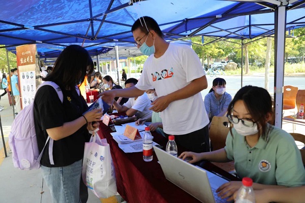 9月10日早上7点,我院迎新工作正式启动。从体温检测、消毒处理、信息审核、提交材料到注册登记,各个环节紧密相扣,规范严谨。志愿者们分担起新生们沉甸甸的行李,帮助他们顺利完成生活物品的领取等相关工作。学校第二课堂展区人流不断,精彩纷呈。为了使入学新生尽快熟悉校园环境,志愿者们向大家简单的介绍了学校教学楼以及宿舍的分布情况,同时为新生们接下来的大学生活提出了自己的经验与建议。他们不辞辛苦,在烈日炎炎下帮助新生搬运行李,让刚刚踏入大学校园的学弟学妹们感受到了家的温暖。