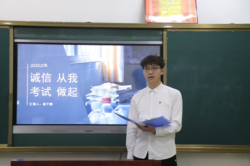 2021-2022学年第二学期期末考试即将来临,为弘扬诚信精神,增强同学们的诚信意识,鼓励大家以积极乐观,诚实守信的态度去面对期末考试。SJB世俱杯官方网站于2022年6月5日在22#401教室举行“诚信考试,从我做起”演讲比赛,参加比赛的有2020级及2021级共12名同学。